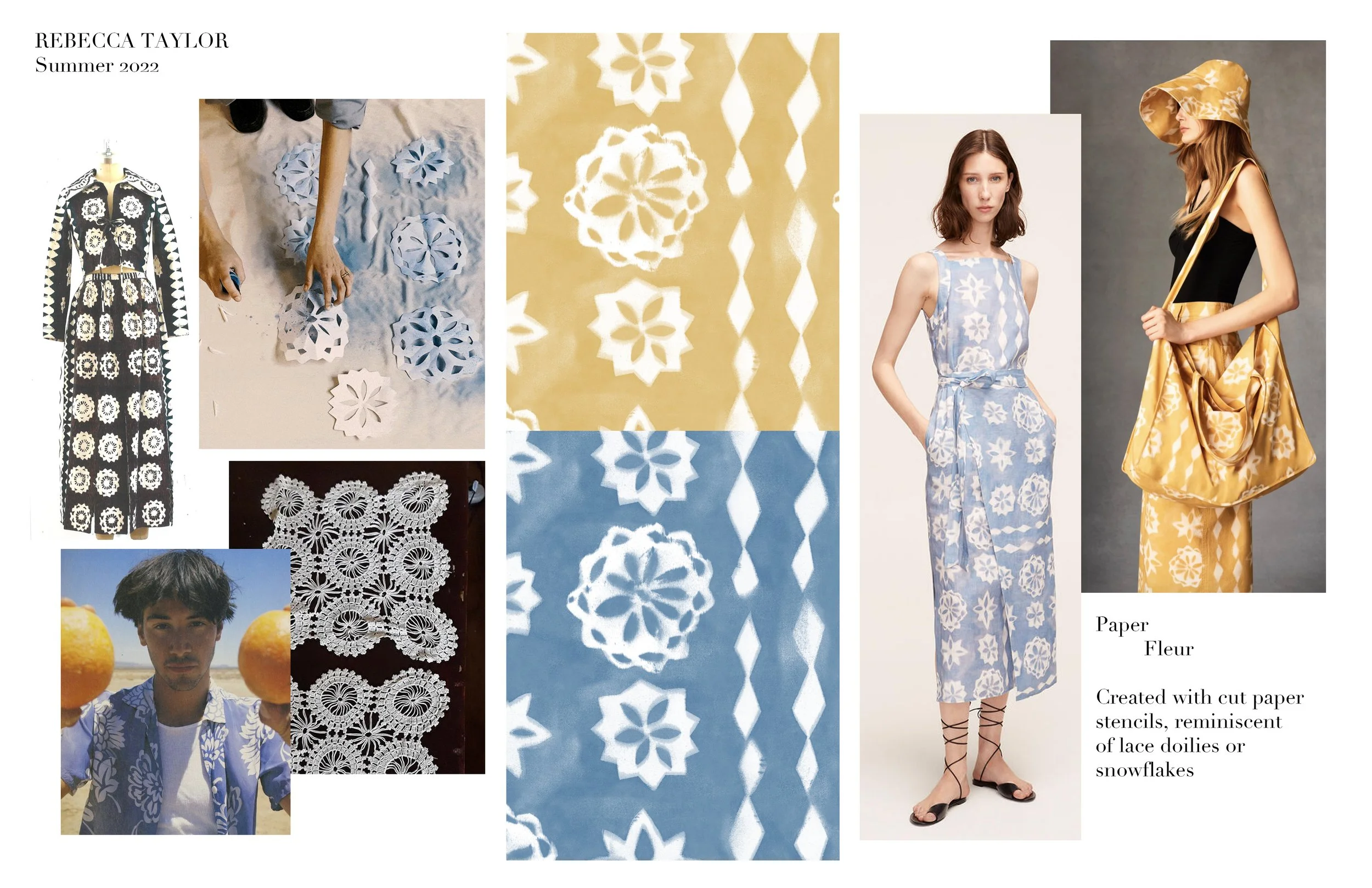 Rebecca TaylorZoe led the Rebecca print & embellishment team to create signature romantic prints, color palettes, and fabric developments.